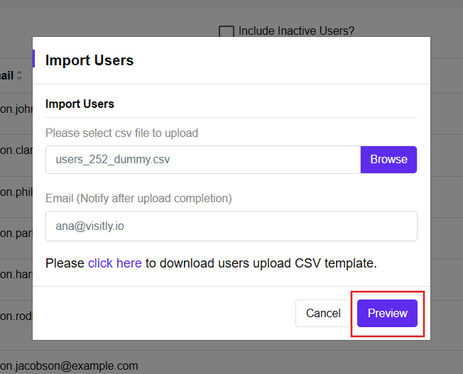 Your users will be added to Visitly once the import is complete. If any issues are found, you’ll be notified by email.