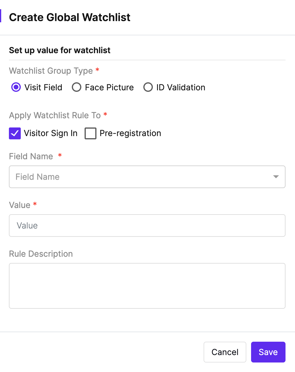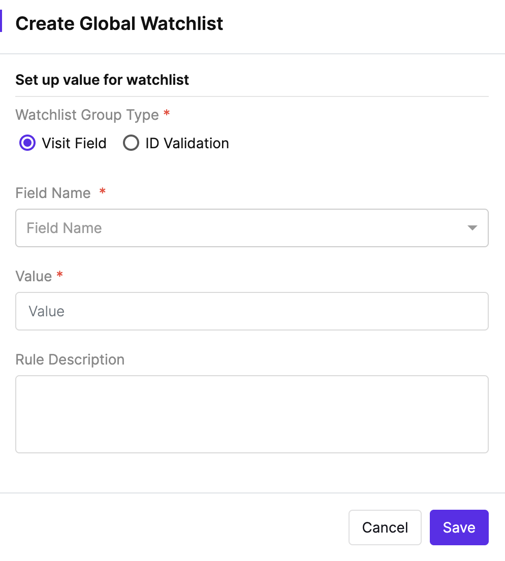 4. Select Visit Field under the Watchlist Group Type dropdown.