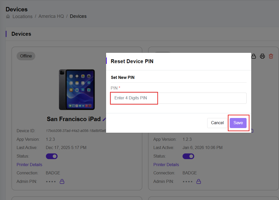 If you need to change the PIN for a Visitly device, you can easily reset it from the Visitly Admin Dashboard. This is useful if the PIN has been forgotten, shared incorrectly, or needs to be updated for security reasons.